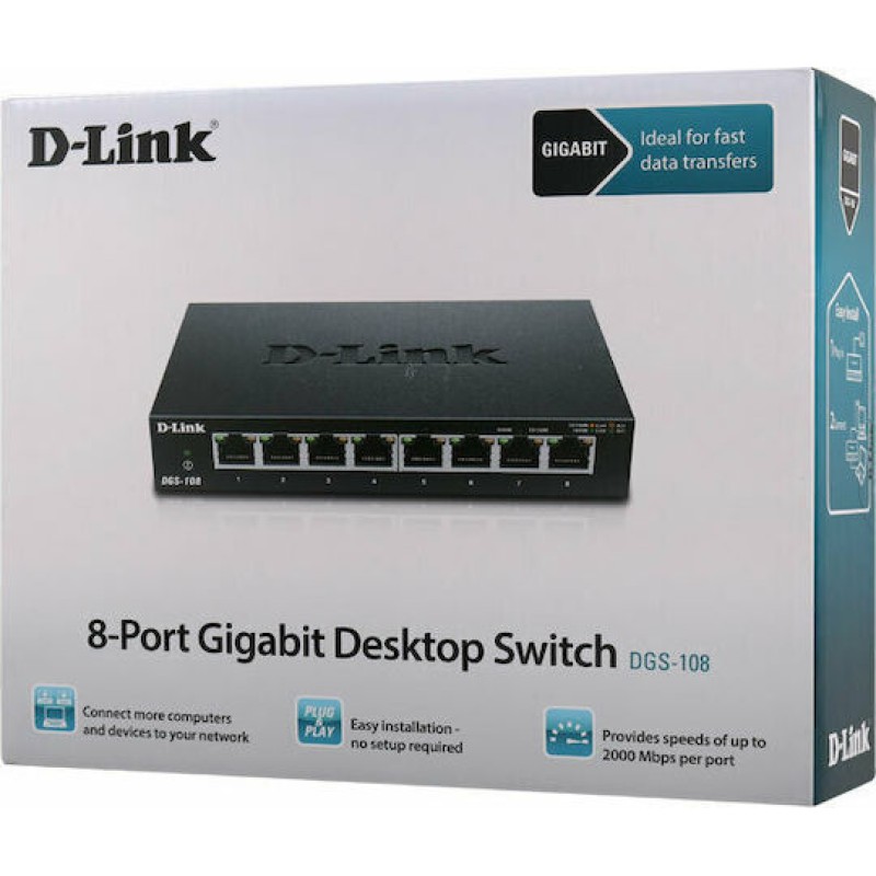 Τα προϊόντα που δεν αναγράφουν διαθέσιμο σημαίνει ότι δεν υπάρχουν άμεσα διαθέσιμα στο κατάστημα και θα παραληφθούν το αργότερο εντός των εργάσιμων ημερών που αναγράφεται στη διαθεσιμότητα. Σε κάθε περίπτωση η ημερομηνία μπορεί να μεταβληθεί και θα υπάρχει σχετική ενημέρωσή σας.Ο διακόπτης δικτύου είναι unmanaged τύπου, λειτουργεί στο επίπεδο Layer 2 και δεν υποστηρίζει PoE. Διαθέτει 8 θύρες Ethernet με ταχύτητα 1000 Mbps, εύρος ζώνης 16 Gbps και πίνακα διευθύνσεων MAC με 8000 εγγραφές. Η τοποθέτηση σε rack δεν υποστηρίζεται.
