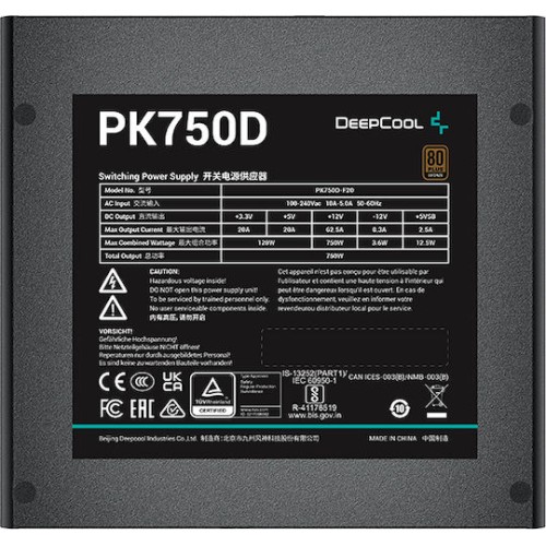 Deepcool PK750D 750W Τροφοδοτικό Υπολογιστή Μαύρο (R-PK750D-FA0B-JGEU)