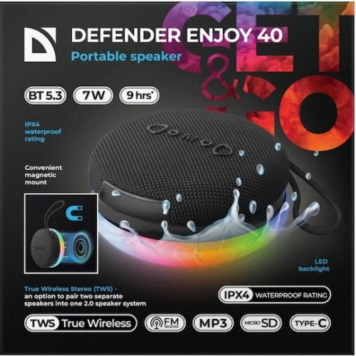 Defender Enjoy 40 Ηχείο Bluetooth 7W με Διάρκεια Μπαταρίας έως 9 ώρες Μαύρο (65141)