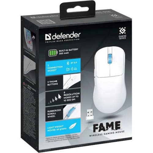 Defender Fame GM-516 Ασύρματο Gaming Ποντίκι 10000 DPI Λευκό (52516)