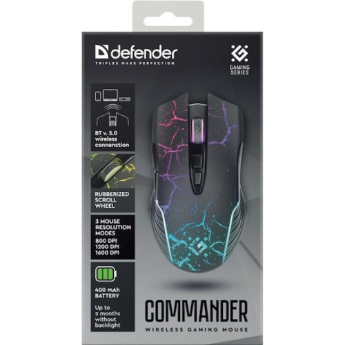 Defender GM-511 Commander Ασύρματο RGB Gaming Ποντίκι Μαύρο (52511)
