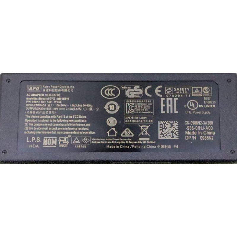 Dell Φορτιστής Laptop 65W χωρίς Καλώδιο Τροφοδοσίας Bulk (492-BBUX)