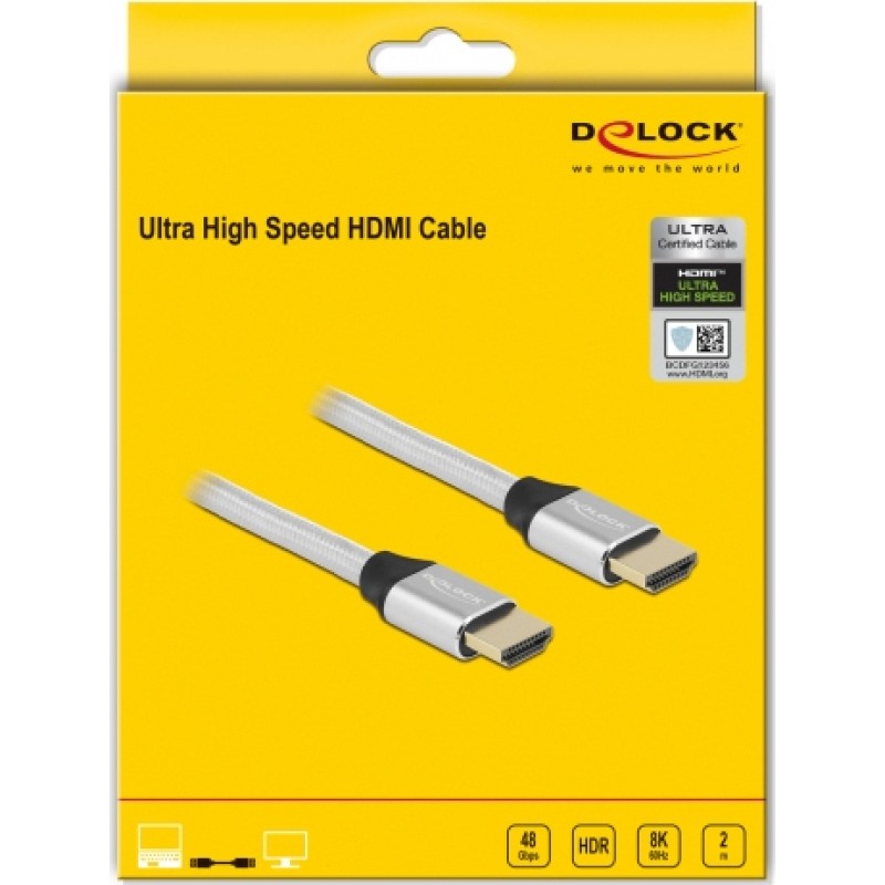 DeLock Braided Cable HDMI male - HDMI male 2m Ασημί (85367)