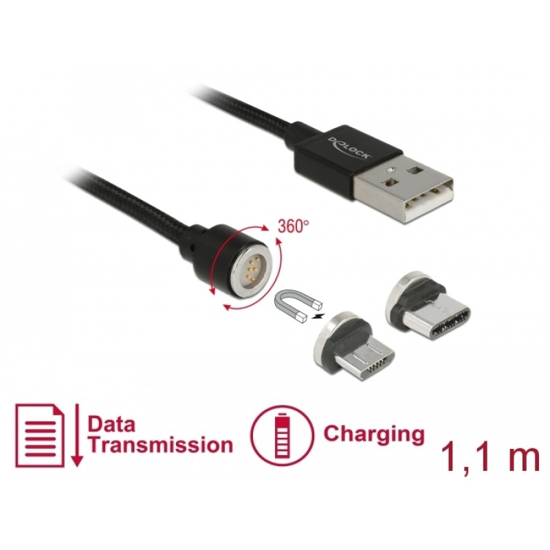 DeLock Braided / Magnetic USB to Type-C / micro USB Cable Μαύρο 1,1m (85723) (85723)