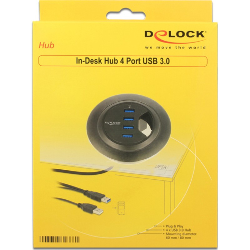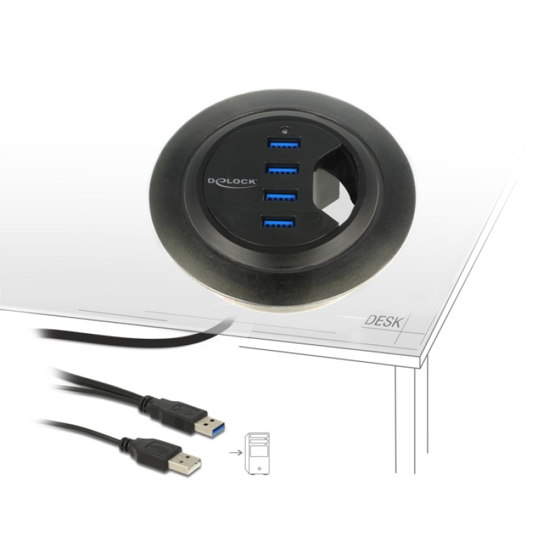 DeLock In-Desk Hub 4 Port USB 3.0 (62868) (62868)