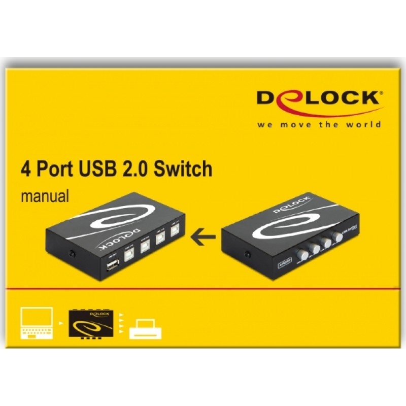 Τα προϊόντα που δεν αναγράφουν διαθέσιμο σημαίνει ότι δεν υπάρχουν άμεσα διαθέσιμα στο κατάστημα και θα παραληφθούν το αργότερο εντός των εργάσιμων ημερών που αναγράφεται στη διαθεσιμότητα. Σε κάθε περίπτωση η ημερομηνία μπορεί να μεταβληθεί και θα υπάρχει σχετική ενημέρωσή σας.Αυτή η διακλάδωση της Delock μπορεί να χρησιμοποιηθεί για σύνδεση μιας συσκευής USB σε τέσσερις υπολογιστές ή laptop. Στην διακλάδωση μπορούν να συνδεθούν π.χ. ένα HDD, εκτυπωτής, σαρωτής κτλ. Με τη χρήση ενός από τα τέσσερα κουμπιά, μπορεί χειροκίνητα να επιλέξει ποια συσκευή θα συνδεθεί στη συσκευή USB.