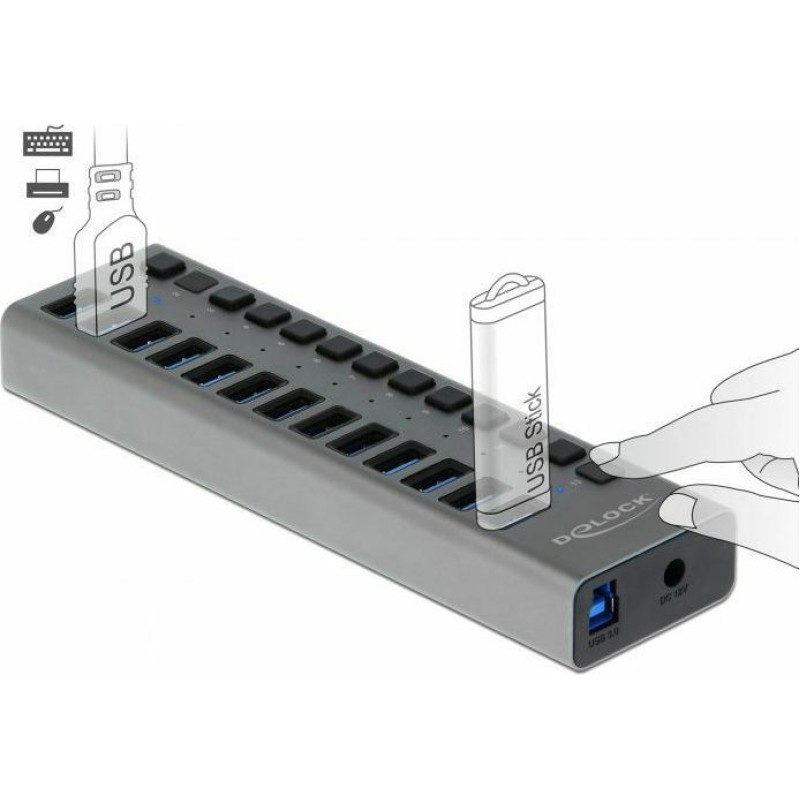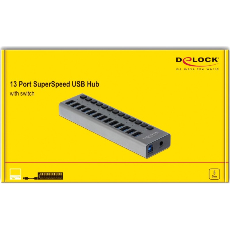 DeLock USB 3.0 Hub 13 Θυρών USB-A & Θύρα Φόρτισης και Εξωτερική Παροχή Ρεύματος (63738)