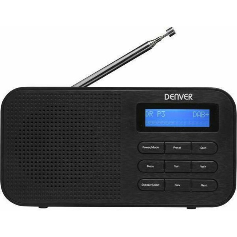 Τα προϊόντα που δεν αναγράφουν διαθέσιμο σημαίνει ότι δεν υπάρχουν άμεσα διαθέσιμα στο κατάστημα και θα παραληφθούν το αργότερο εντός των εργάσιμων ημερών που αναγράφεται στη διαθεσιμότητα. Σε κάθε περίπτωση η ημερομηνία μπορεί να μεταβληθεί και θα υπάρχει σχετική ενημέρωσή σας.Το φορητό ραδιόφωνο της Denver έχει ψηφιακό χειρισμό (με κουμπιά) για να αλλάζετε και να αποθηκεύετε με ευκολία ραδιοφωνικούς σταθμούς. Με το εξελιγμένο σύστημα ψηφιακής μετάδοσης μπορείτε να ακούτε ψηφιακούς ραδιοφωνικούς σταθμούς DAB και DAB+, χωρίς τα "χιόνια" και τις παρεμβολές των FM. Επιπλέον διαθέτει υποδοχή AUX για να συνδέσετε ενσύρματα συσκευές όπως mp3, iPod, και υποδοχή για ακουστικά για να απολαμβάνετε τη μουσική σας στην ένταση που θέλετε.