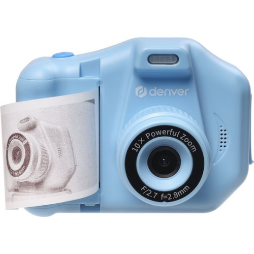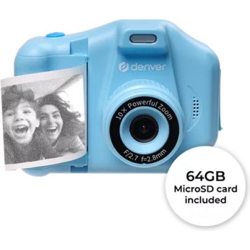 Η DENVER KPC-1370BU Kids Print Camera είναι μια παιδική φωτογραφική με άμεση thermal εκτύπωση σε γκρι/dot στυλ, με κάθε ρολό χαρτιού να δίνει περίπου 50 φωτογραφίες. Διαθέτει selfie φακό, βίντεο έως 1440p (interpolated), φωτογραφίες έως 48 MP (interpolated) και 10x ψηφιακό ζουμ. Προσφέρει τέσσερα ενσωματωμένα παιχνίδια και οθόνη 2.8" LCD, ενώ η μπαταρία 800mAh φορτίζει μέσω USB-C. Υποστηρίζει MicroSD έως 64GB για την καταγραφή βίντεο και δέχεται ανταλλακτικά ρολά χαρτιού και αυτοκόλλητα για ατελείωτη δημιουργία.