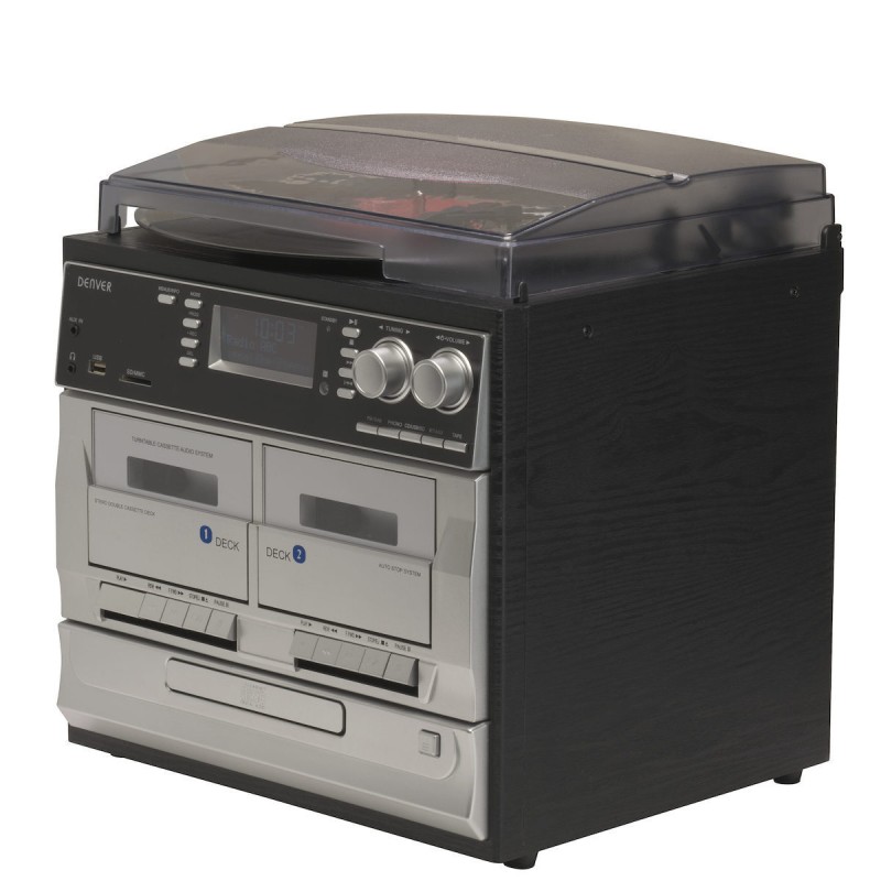 Μουσικό κέντρο με πικάπ ραδιόφωνο DAB+/FM, CD player, διπλό κασετόφωνο, υποδοχή USB και κάρτας SD.