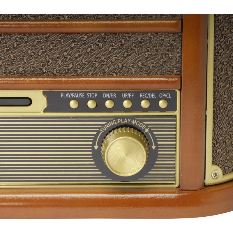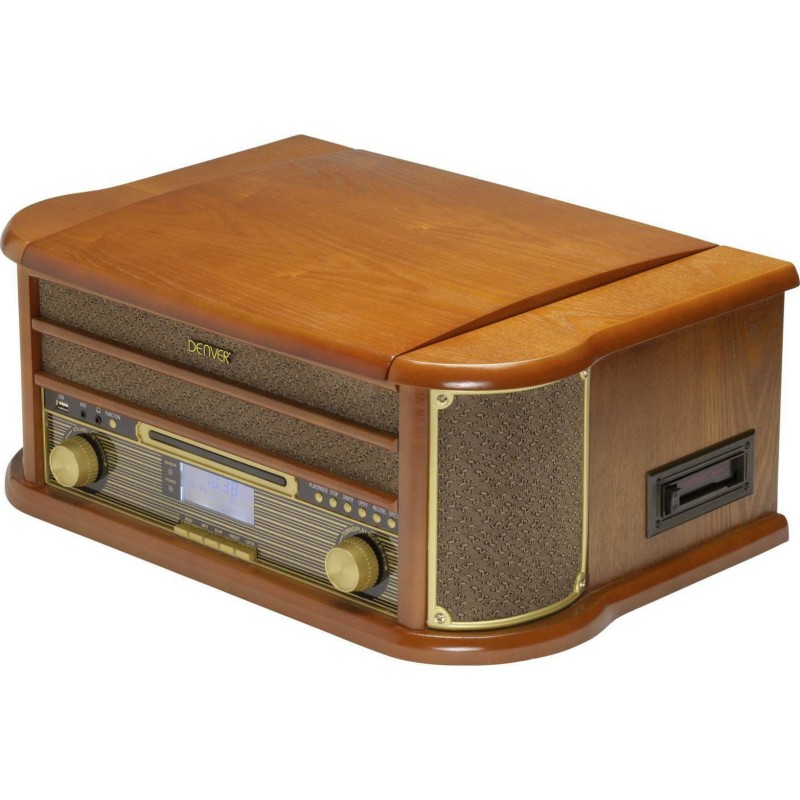 Ρετρό ξύλινο μουσικό κέντρο με DAB, πικάπ και κασετόφωνο. Επίσης εγγραφή σε USB από LP, CD και κασέτα