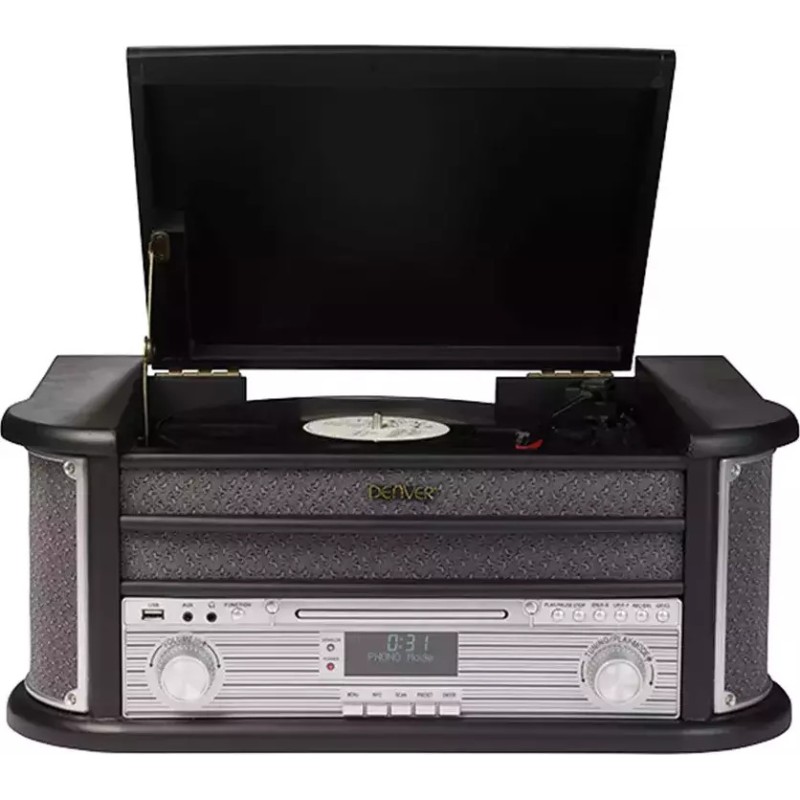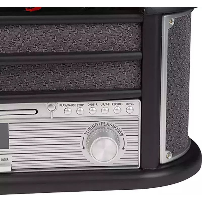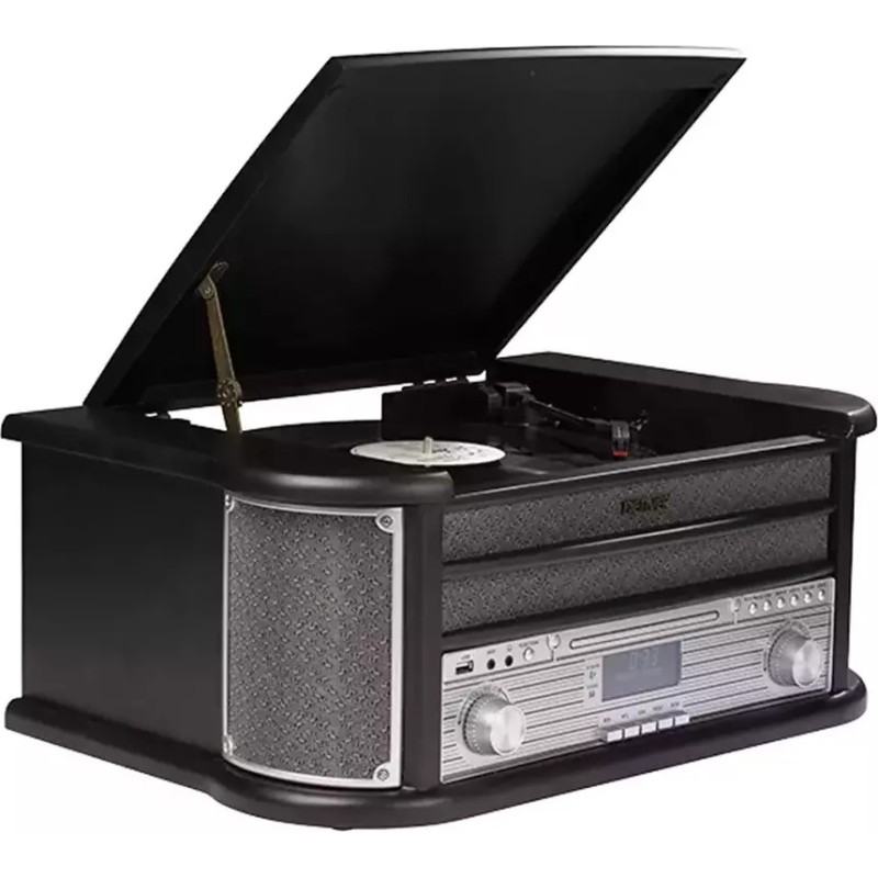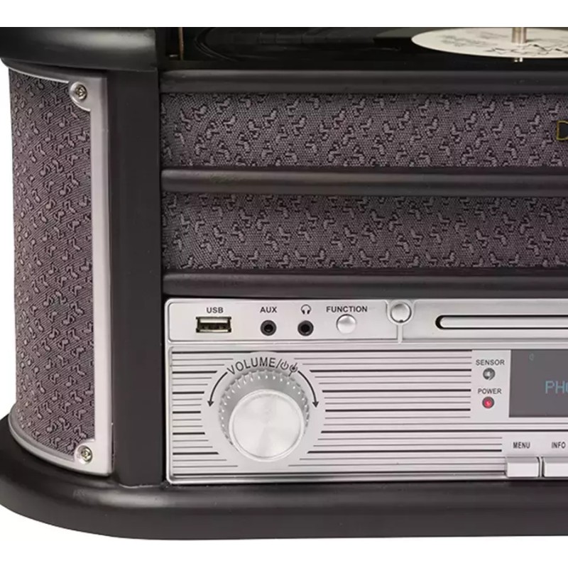 Ρετρό ξύλινο μουσικό κέντρο με DAB, πικάπ και κασετόφωνο, εγγραφή USB, CD και USB από LP, CD και κασέτα.