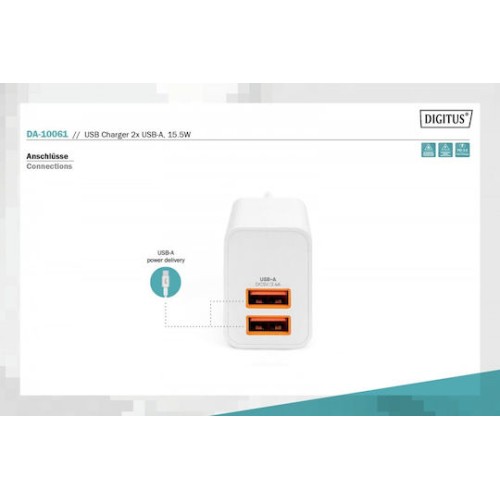 Digitus Βάση Φόρτισης με 2 Θύρες USB-A 15W σε Λευκό χρώμα (DA-10061) (DA-10061)