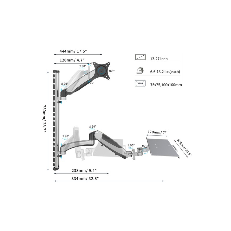 Μέγιστη Διάσταση Οθόνης: 27", Μέγιστο Φορτίο: 8kg