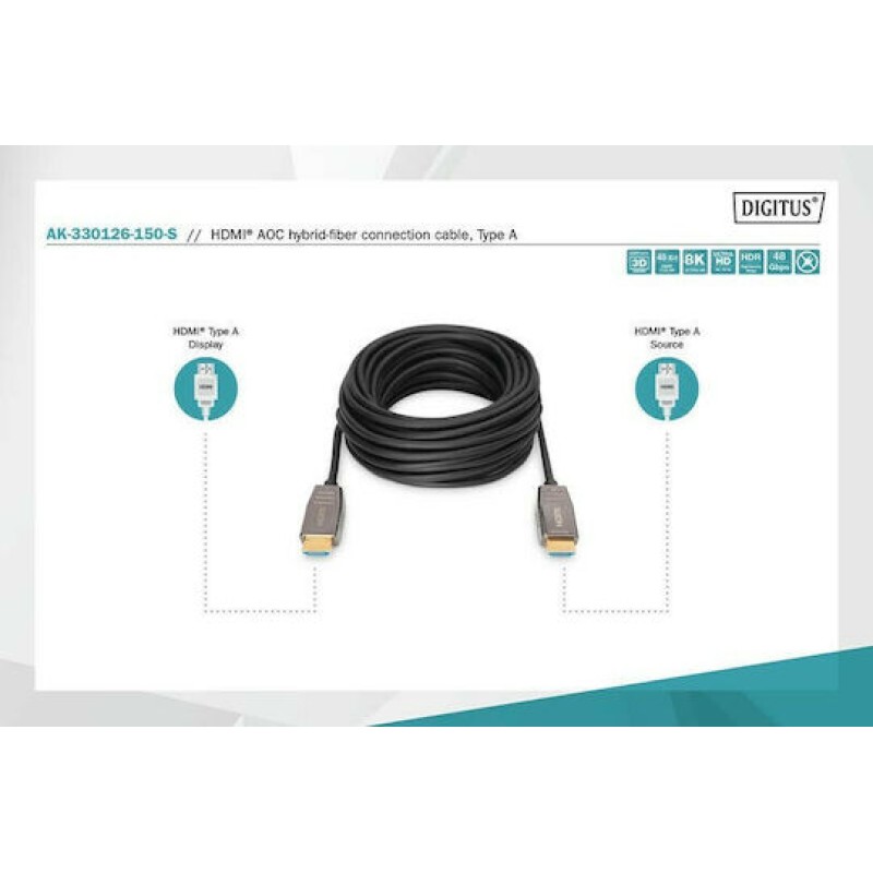 Digitus HDMI 2.1 Cable HDMI male - HDMI male 15m Μαύρο (AK-330126-150-S)