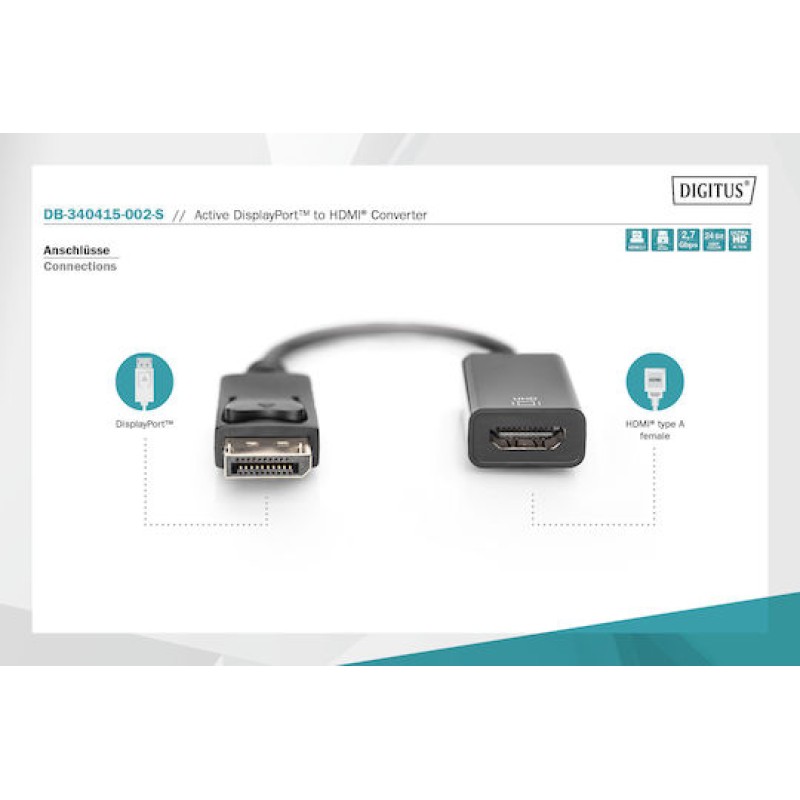 Τα προϊόντα που δεν αναγράφουν διαθέσιμο σημαίνει ότι δεν υπάρχουν άμεσα διαθέσιμα στο κατάστημα και θα παραληφθούν το αργότερο εντός των εργάσιμων ημερών που αναγράφεται στη διαθεσιμότητα. Σε κάθε περίπτωση η ημερομηνία μπορεί να μεταβληθεί και θα υπάρχει σχετική ενημέρωσή σας.Αυτός ο μετατροπέας είναι ιδανικός για τη σύνδεση συσκευών με θύρα DisplayPort σε οθόνες ή άλλες συσκευές που διαθέτουν είσοδο HDMI. Με τον κατάλληλο σχεδιασμό του, επιτρέπει τη μετάδοση σήματος εξαιρετικά εύκολα και γρήγορα.