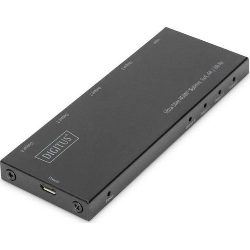 Εξαιρετικά λεπτό Splitter HDMI, 1x4, 4K/60Hz HDR, HDCP 2.2, 18 Gbps, τροφοδοσία μέσω Micro USB