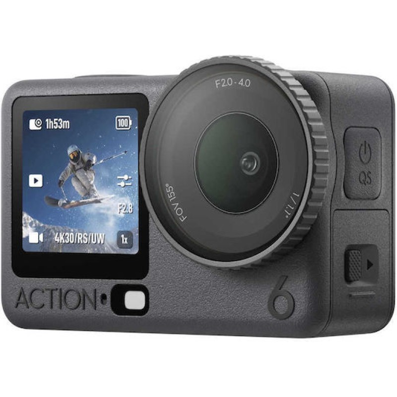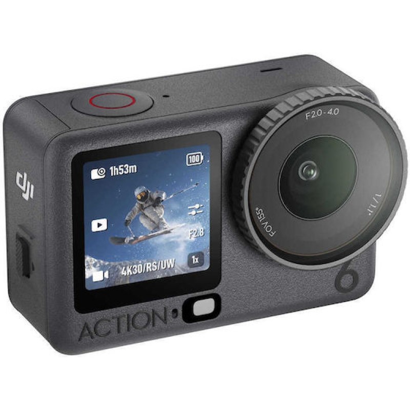 Ζήσε τη δράση με το DJI Osmo Action 6. Αξιοποίησε τον νέο αισθητήρα 1/1,1", το μεταβλητό διάφραγμα f/2.0–f/4.0 και τράβα 4K/120fps με απόλυτη ευκρίνεια. Σύνδεσε άμεσα μικρόφωνο OsmoAudio, γράψε ατελείωτα με 50GB ενσωματωμένη μνήμη και δημιούργησε σταθερά πλάνα με RockSteady και HorizonSteady. Βούτα έως 20 μέτρα και κατέγραψε κάθε περιπέτεια, ακόμα και στο κρύο για 4 ώρες.