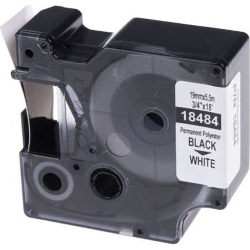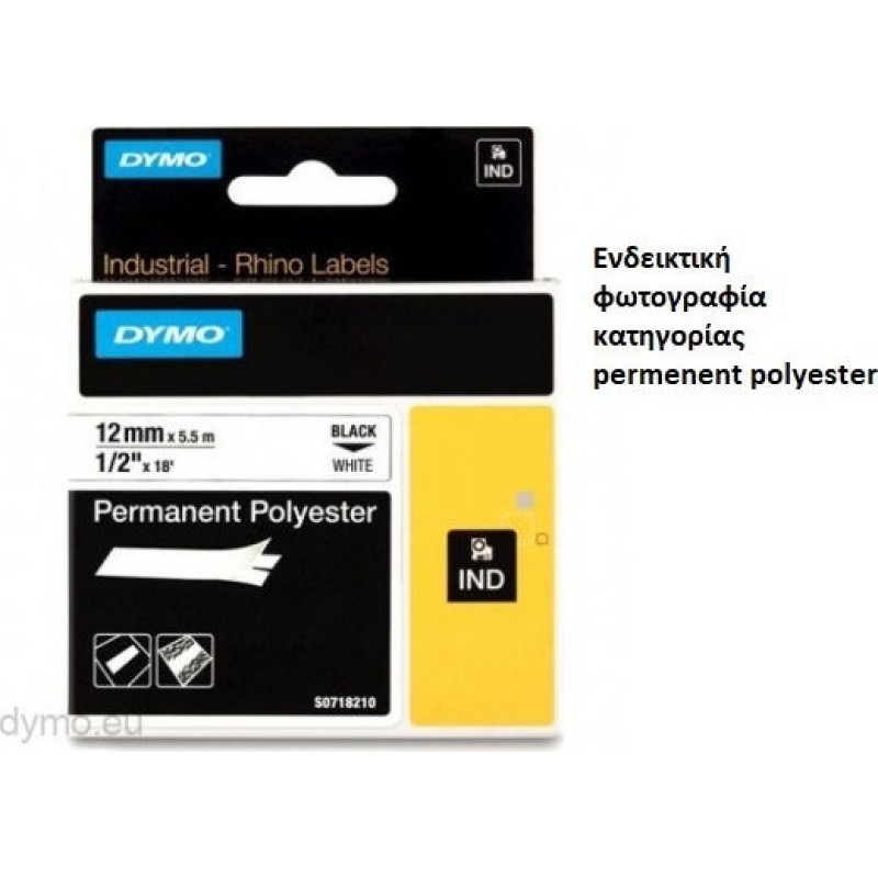 Ταινία ετικετογράφου Dymo Ind Rhino Tape Permanent Polyester Black On White 19mm, για συμβατούς ετικετογράφους Dymo.