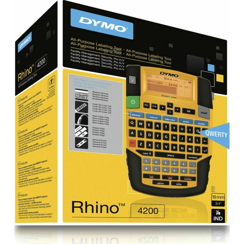 Τα προϊόντα που δεν αναγράφουν διαθέσιμο σημαίνει ότι δεν υπάρχουν άμεσα διαθέσιμα στο κατάστημα και θα παραληφθούν το αργότερο εντός των εργάσιμων ημερών που αναγράφεται στη διαθεσιμότητα. Σε κάθε περίπτωση η ημερομηνία μπορεί να μεταβληθεί και θα υπάρχει σχετική ενημέρωσή σας.Με το γνώριμο πληκτρολόγιό του QWERTY, πλήκτρα άμεσης πρόσβασης “Hot Key” και άλλες λειτουργίες εξοικονόμησης χρόνου, ο DYMO® Rhino™ 4200 επιτυγχάνει τις εργασίες σηματοδότησης γρήγορα και σωστά.