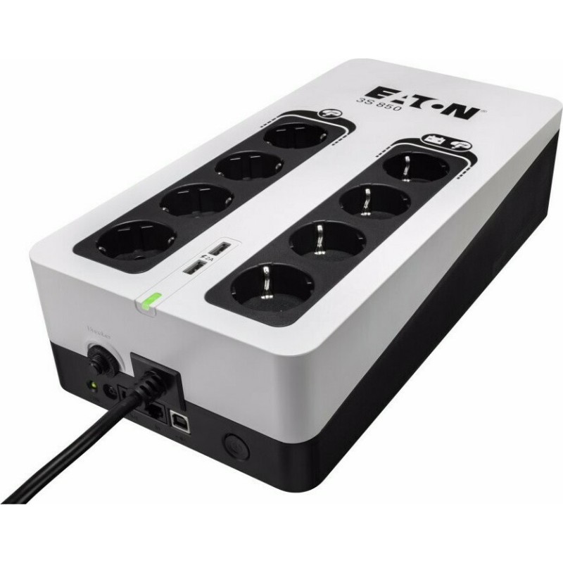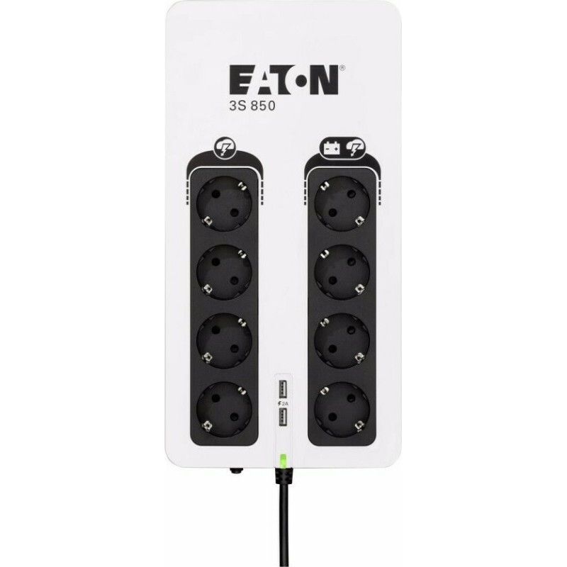Το 3S Gen2 UPS Off-Line 850VA της Eaton είναι ένα Tower UPS με 8 πρίζες τύπου Schuko. Η λειτουργία του είναι (VFD) Off-Line/Stand-Βy που προσφέρει ρεύμα σε περιπτώσεις διακοπής του ρεύματος αλλά όχι σε αυξομειώσεις της τάσης οπότε και δεν προτείνεται για ευαίσθητο εξοπλισμό. Η μπαταρία του μπορεί να κρατήσει 1 λεπτό με πλήρες φορτίο (όταν οι συσκευές που έιναι συνδεδεμένες τραβάνε το μέγιστο ρεύμα που μπορεί να δώσει το UPS).