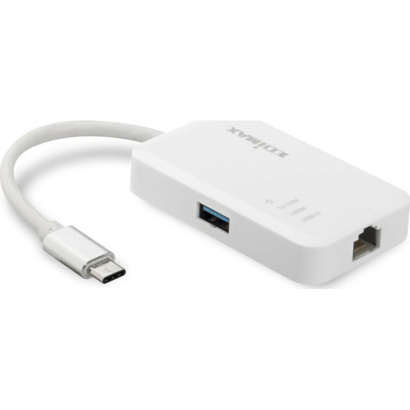 Edimax EU-4308 USB 3.1 Hub 3 Θυρών με σύνδεση USB-C / Ethernet Λευκό (EU-4308)