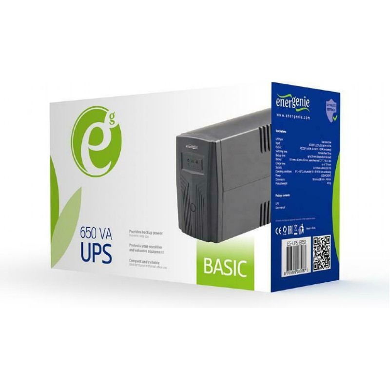Το UPS-PC-652A Line-Interactive 650VA 390W με 2 IEC Πρίζες της Energenie είναι ένα Tower UPS με 2 πρίζες τύπου IEC (όπως αυτή των τροφοδοτικών για υπολογιστές). Η λειτουργία του είναι (VI) Line-Interactive που προσαρμόζει την τάση εξόδου συνεχώς μέσω αυτόματου ρυθμιστή τάσης προστατεύοντας από αυξομειώσεις της τάσης και διακοπές του ρεύματος.