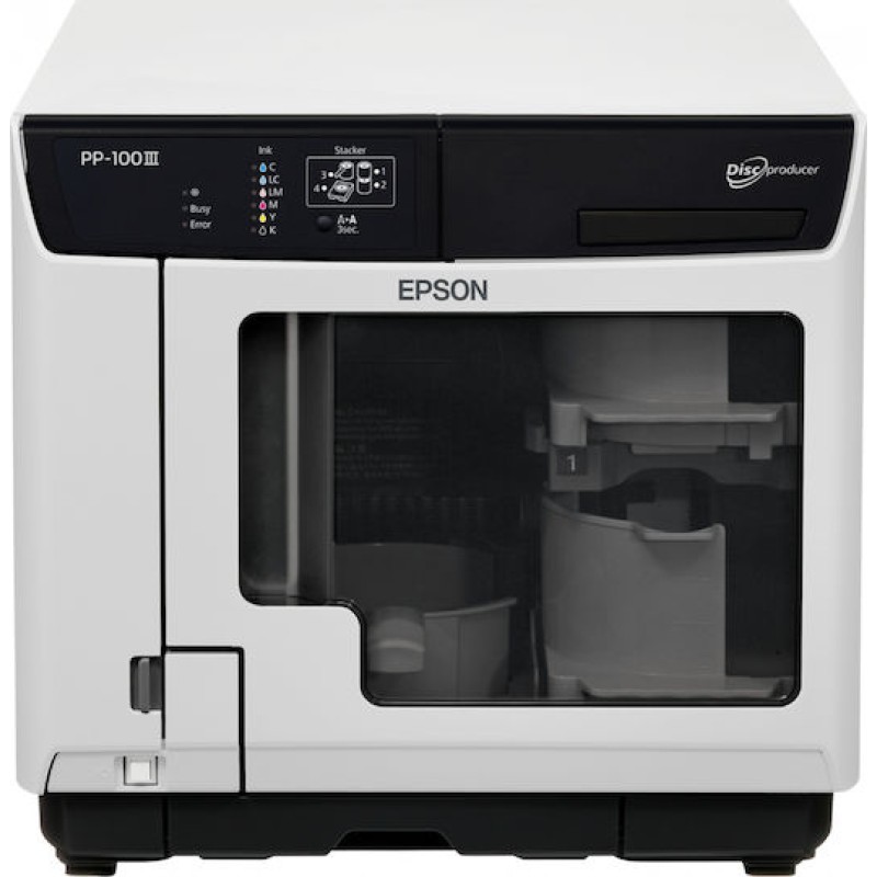 Το Epson Discproducer™ PP-100III είναι μια επαγγελματική συσκευή που συνδυάζει εγγραφή και έγχρωμη εκτύπωση σε CD, DVD και Blu-ray δίσκους. Προορίζεται για χρήση σε περιβάλλοντα που απαιτούν μαζική παραγωγή δίσκων με ακρίβεια και αξιοπιστία, όπως εταιρείες, νοσοκομεία, εκπαιδευτικά ιδρύματα και φωτογραφικά στούντιο. Διαθέτει ρομποτικό μηχανισμό για αυτόματη διαχείριση έως 100 δίσκων, υψηλής ποιότητας inkjet εκτύπωση και συνοδευτικό λογισμικό για εύκολη διαχείριση των έργων. Είναι ιδανικό για δημιουργία αρχείων, backup ή διανομή περιεχομένου σε φυσικά μέσα.