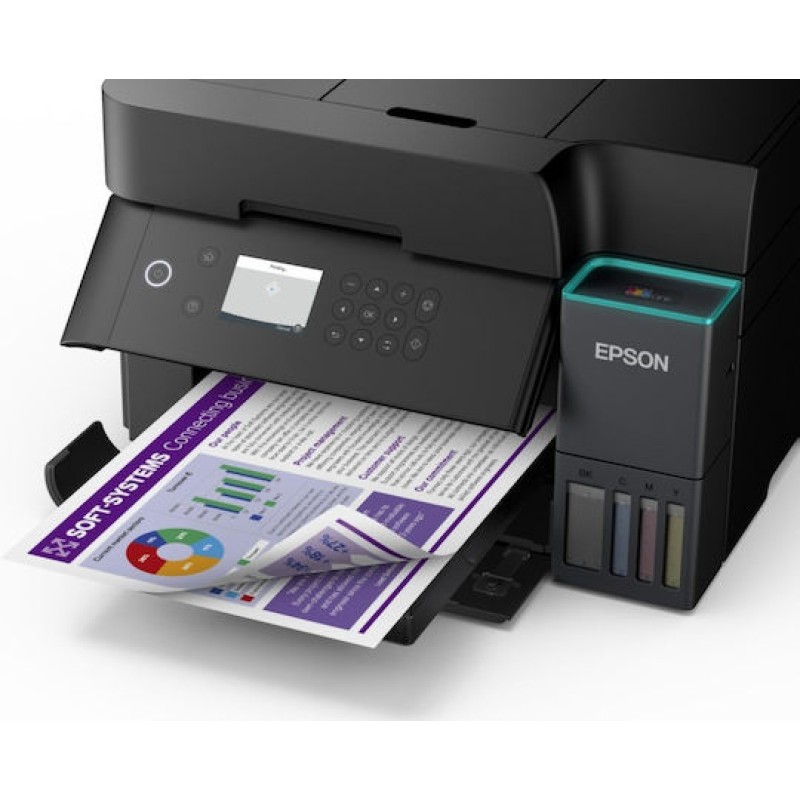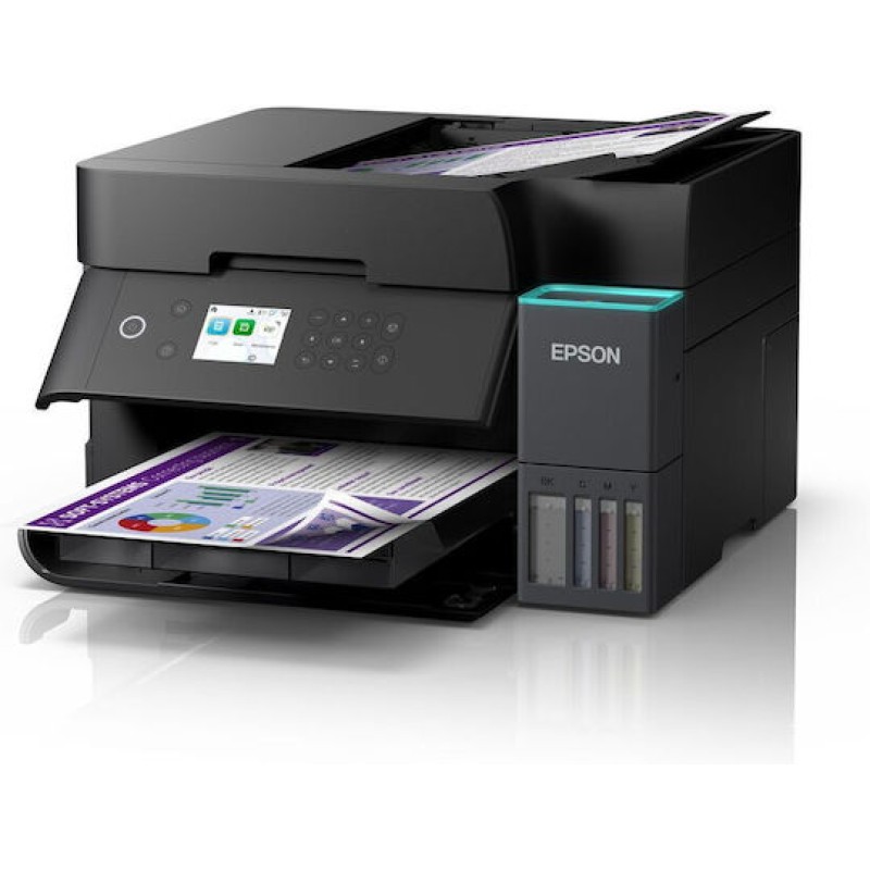 Ο EcoTank L6370 είναι πολυλειτουργικός εκτυπωτής A4 με δυνατότητα εκτύπωσης, σάρωσης και αντιγραφής διπλής όψης. Προσφέρει εξοικονόμηση έως 95% στο κόστος μελανιού με επαναπληρούμενα δοχεία.. Διαθέτει εύχρηστο σύστημα αναπλήρωσης με κλείδωμα φιαλιδίων, ασύρματη και ενσύρματη συνδεσιμότητα και υποστήριξη της εφαρμογής Epson Smart Panel. Ανήκει στη δημοφιλή σειρά EcoTank, με πάνω από 100 εκατ. πωλήσεις παγκοσμίως.