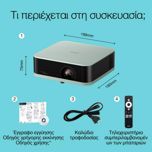 Epson Lifestudio Pop EF-61G Mini Projector 3LCD Λάμπας LED με Ενσωματωμένα Ηχεία (V11HB72340)