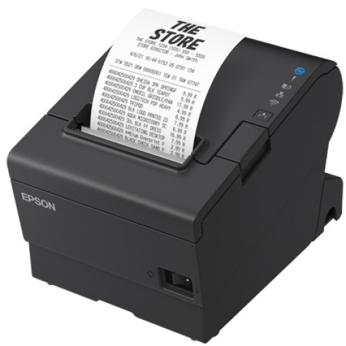 Θερμικός εκτυπωτής αποδείξεων της εταιρείας Epson με μονόχρωμη εκτύπωση. Διαθέτει 3 διαφορετικές εισόδους σύνδεσης (Ethernet, Serial, USB).