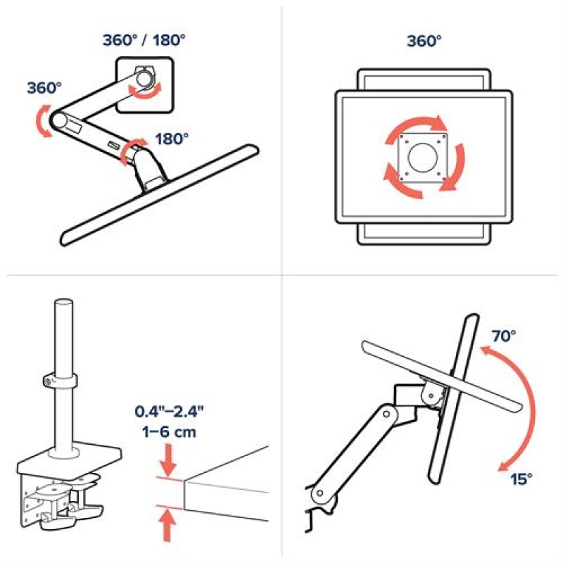 Η βάση γραφείου Ergotron LX Pro Desk Mount Articulating Monitor Arm με ψηλό στύλο (μοντέλο 45-695-292) είναι ιδανική για οθόνες έως 34" και βάρους 1,8–10,0 κιλά. Περιλαμβάνει ρυθμιζόμενο ύψος 33 εκ., κλίση 85° προς τα πάνω και 5° προς τα κάτω, περιστροφή 360° και δυνατότητα αλλαγής προσανατολισμού από οριζόντιο σε κατακόρυφο. Η επέκταση φτάνει τα 64 εκ., ενώ η βάση είναι συμβατή με τοίχους πάχους 10–60 χιλιοστών. Η κατασκευή αλουμινίου εξασφαλίζει ανθεκτικότητα και κομψή εμφάνιση.
