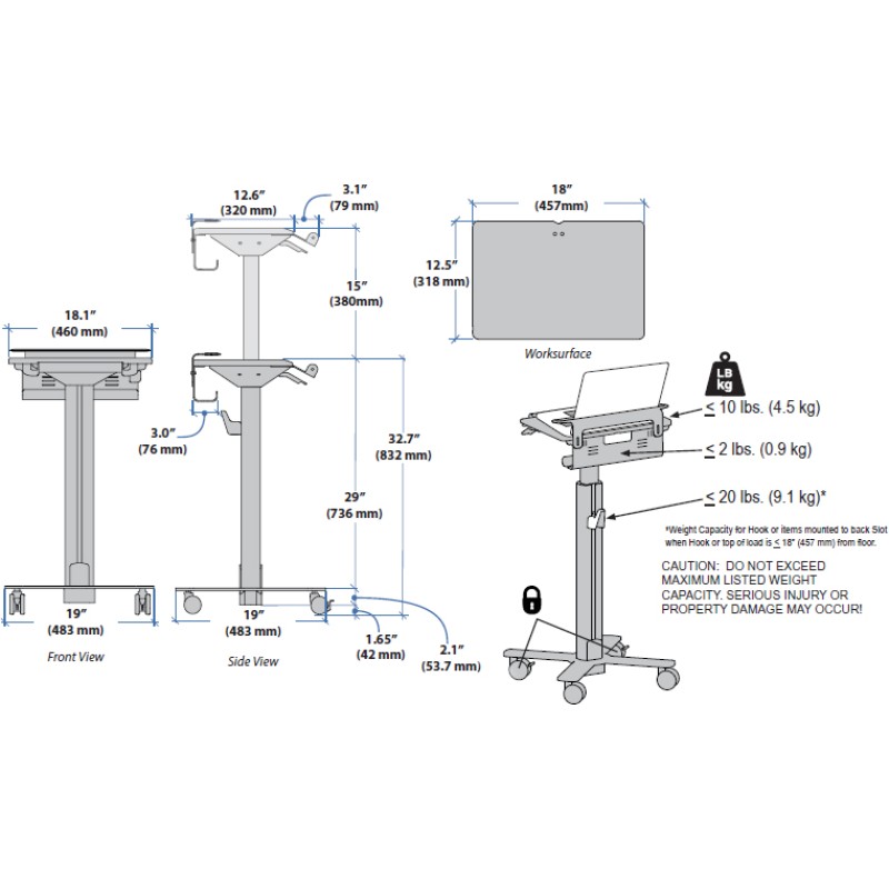 Worksurface Dimensions 18" x 12.5" (45.7 x 31.8 cm)