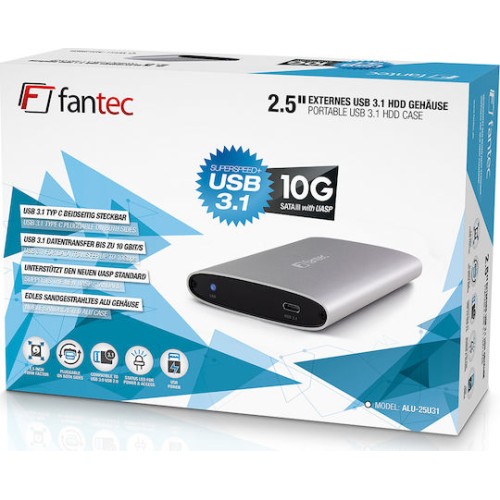 Fantec ALU-25U31 Θήκη για Σκληρό Δίσκο 2.5" SATA III με σύνδεση USB 3.1 σε Ασημί χρώμα (1795)