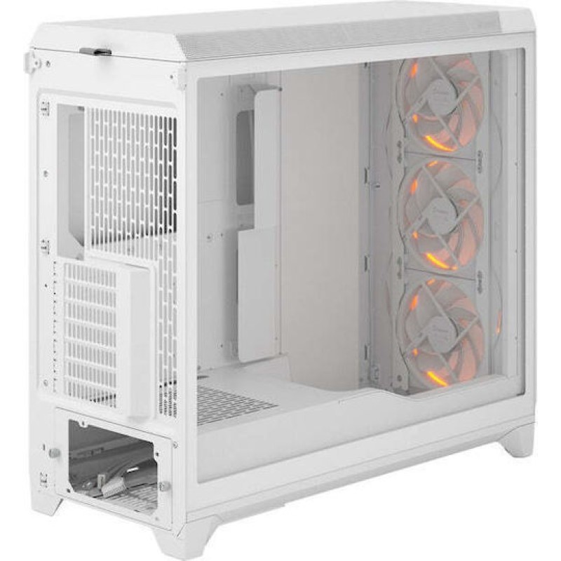 Η Fractal Design Meshify 3 XL White RGB TG Clear Tint είναι μια θήκη τύπου Full Tower ATX που συνδυάζει προηγμένο σχεδιασμό, εξαιρετική ροή αέρα και εντυπωσιακό φωτισμό RGB, ιδανική για χρήστες που επιθυμούν να αναδείξουν το εσωτερικό του υπολογιστή τους με στυλ.