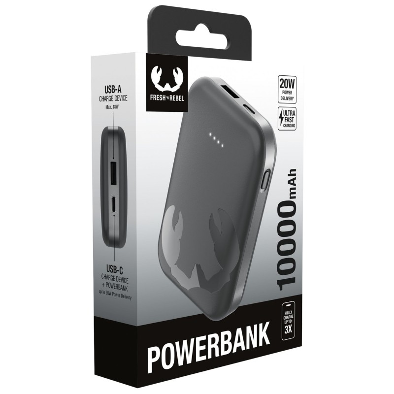Fresh n Rebel Powerbank 10000 mAh USB-C - Ultra Fast Charging & 20W PD - Storm Grey (2PBP10000SG)