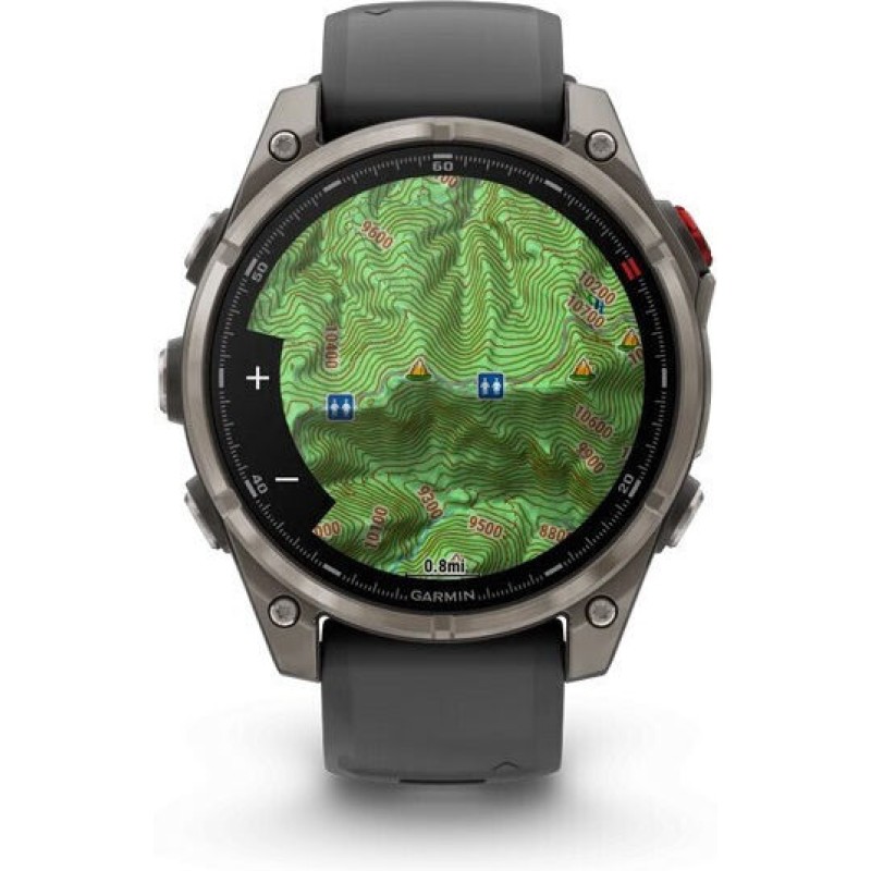 Το Garmin fēnix 8 Pro είναι ένα premium multisport GPS smartwatch σχεδιασμένο για αθλητές και λάτρεις της περιπέτειας. Διαθέτει ανθεκτική κατασκευή με τιτάνιο και οθόνη AMOLED 1,4”, ενώ η μπαταρία του διαρκεί έως 15 ημέρες σε λειτουργία smartwatch. Υποστηρίζει LTE και δορυφορική σύνδεση μέσω inReach, επιτρέποντας κλήσεις, μηνύματα, LiveTrack και SOS ακόμη και χωρίς κινητό, καθώς και επικοινωνία εκτός δικτύου μέσω δορυφόρου. Προσφέρει προηγμένα εργαλεία προπόνησης (VO₂ max, training readiness, PacePro, ClimbPro, race predictor), πλήρη παρακολούθηση υγείας (καρδιακός ρυθμός, HRV, ύπνος, Pulse Ox, ECG σε ορισμένες περιοχές) και πολλές δραστηριότητες όπως τρέξιμο, τρίαθλο, σκι, ποδηλασία και καταδύσεις έως 40 m. Περιλαμβάνει επίσης ενσωματωμένους χάρτες, πλοήγηση GPS πολλαπλών συχνοτήτων, φακό LED, μουσική χωρίς κινητό, πληρωμές Garmin Pay και εφαρμογές μέσω Connect IQ. Είναι ρολόι υψηλής κατηγορίας για outdoor δραστηριότητες, προπόνηση και καθημερινή παρακολούθηση υγείας.