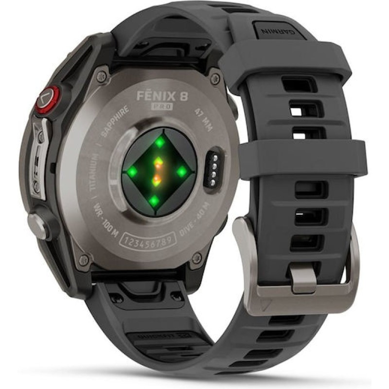 Garmin Fenix 8 Pro Titanium 47mm Αδιάβροχο Smartwatch με eSIM και Παλμογράφο Graphite/Black (010-03198-11)