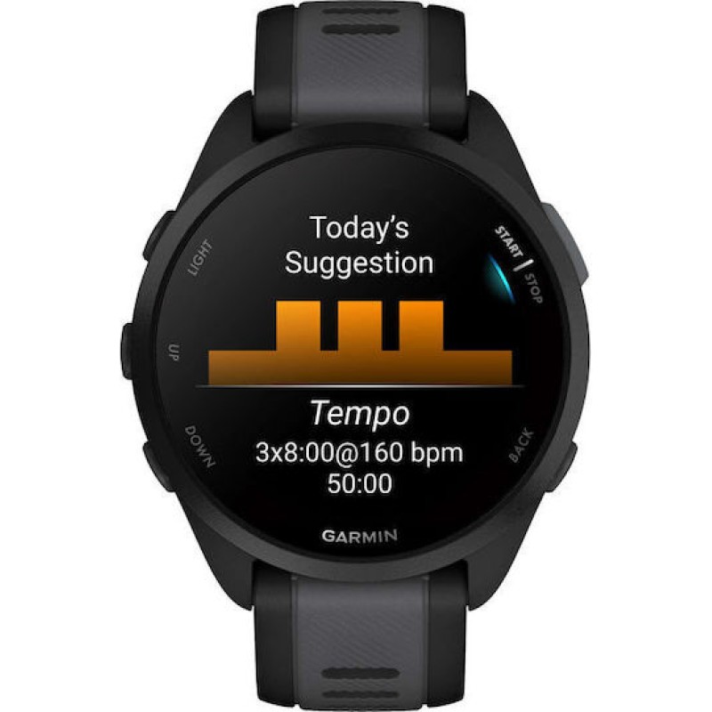 Το Garmin Forerunner 165 είναι ένα συμπαγές smartwatch ρολόι για τρέξιμο και καθημερινή δραστηριότητα, με φωτεινή AMOLED οθόνη 1,2″ (390×390 px) σε κάσα διαστάσεων 43×43×11,6 mm. Προσφέρει αυτονομία έως 11 ημέρες ως smartwatch ή μέχρι 19 ώρες με ενεργό GPS. Ενσωματώνει GPS (με υποστήριξη GLONASS/Galileo), αισθητήρα καρδιακού ρυθμού, Pulse Ox, βαρόμετρο και πυξίδα, ενώ διατρέχει πάνω από 25 αθλητικά προγράμματα. Υποστηρίζει ειδοποιήσεις, έλεγχο μουσικής, Garmin Pay και ασφάλεια με incident detection μέσω της εφαρμογής Garmin Connect