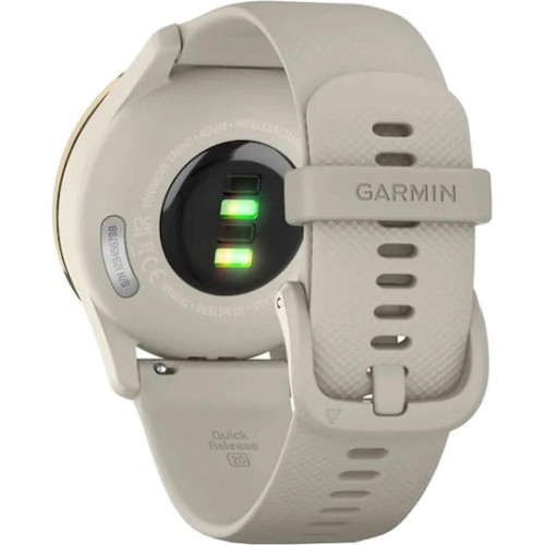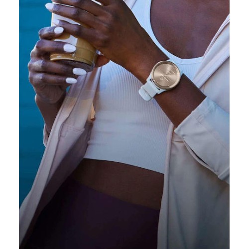 Το Garmin vívomove® Trend French Gray είναι ένα κομψό, υβριδικό smartwatch που συνδυάζει την κλασική αισθητική ενός αναλογικού ρολογιού με τις σύγχρονες έξυπνες λειτουργίες. Διαθέτει φυσικούς δείκτες και μια διακριτική, κρυμμένη οθόνη αφής, η οποία ενεργοποιείται όταν τη χρειάζεστε, ενώ οι δείκτες μετακινούνται έξυπνα ώστε να μην καλύπτουν τις πληροφορίες. Παρά την αναλογική του εμφάνιση, το vívomove Trend προσφέρει ειδοποιήσεις από το smartphone, ανέπαφες πληρωμές μέσω Garmin Pay, λειτουργίες παρακολούθησης υγείας όπως καταγραφή καρδιακών παλμών, παρακολούθηση ύπνου, επιπέδων στρες και ενέργειας (Body Battery). Υποστηρίζει επίσης λειτουργίες fitness, ενώ για GPS βασίζεται στο smartphone. Έχει αυτονομία έως και 5 ημέρες σε λειτουργία smartwatch και επιπλέον 1 ημέρα ως απλό αναλογικό ρολόι. Είναι ανθεκτικό στο νερό (5 ATM), κατάλληλο για ντους ή κολύμπι, και διαθέτει εναλλάξιμο λουράκι (20mm quick release).