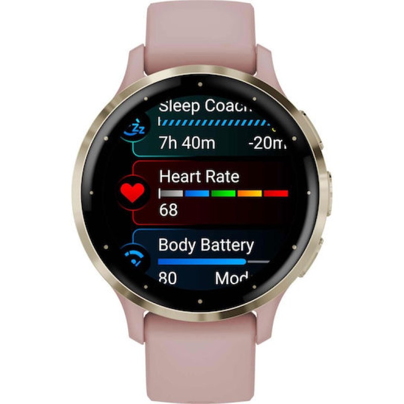 Το Venu 3S Soft Gold with Dust Rose είναι ιδανικό για όσους επιθυμούν ένα κομψό και λειτουργικό ρολόι που συνδυάζει προηγμένες δυνατότητες υγείας και φυσικής κατάστασης με την ευκολία της ασύρματης επικοινωνίας.