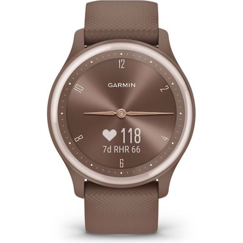 Garmin Vivomove Sport 40mm Αδιάβροχο Smartwatch με Παλμογράφο Cocoa Case and Silicone Band with Peach Gold Accents (010-02566-02)