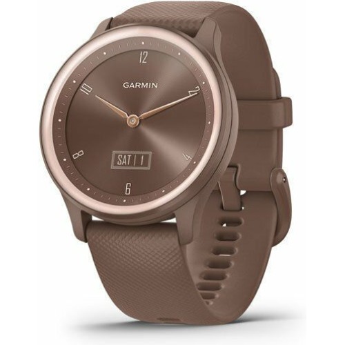Ο Garmin vívomove Sport (Cocoa) είναι ένα κομψό υβριδικό smartwatch με αναλογική εμφάνιση και κρυφή οθόνη αφής OLED. Προσφέρει λειτουργίες υγείας και ευεξίας όπως παρακολούθηση καρδιακού ρυθμού, ύπνου, ενέργειας (Body Battery), στρες και οξυγόνου στο αίμα (Pulse Ox), καθώς και δραστηριότητες για άθληση (γιόγκα, τρέξιμο, κολύμπι κ.ά.). Σύνδεεται με το GPS του κινητού, στέλνει έξυπνες ειδοποιήσεις και έχει αξιοπρεπή αυτονομία έως 5 ημέρες σε λειτουργία smartwatch (και 1 επιπλέον ημέρα σε ρολόι μόνο με δείκτες). Είναι αδιάβροχο έως 5 ATM.