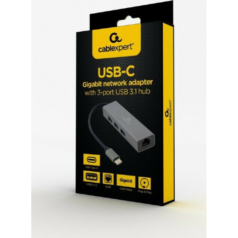 Gembird A-CMU3-LAN-01 USB 3.1 Hub 3 Θυρών με σύνδεση USB-C / Ethernet (A-CMU3-LAN-01)