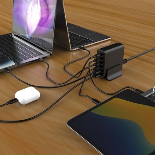 Gembird Βάση Φόρτισης GaN με 2 Θύρες USB-A και 4 Θύρες USB-C 75W Power Delivery / Quick Charge 3.0 σε Μαύρο χρώμα (TA-UC-2A4C-PD75-01-BK) | t-support.grTA-UC-2A4C-PD75-01-BK871630913387687163091338768716309133876
