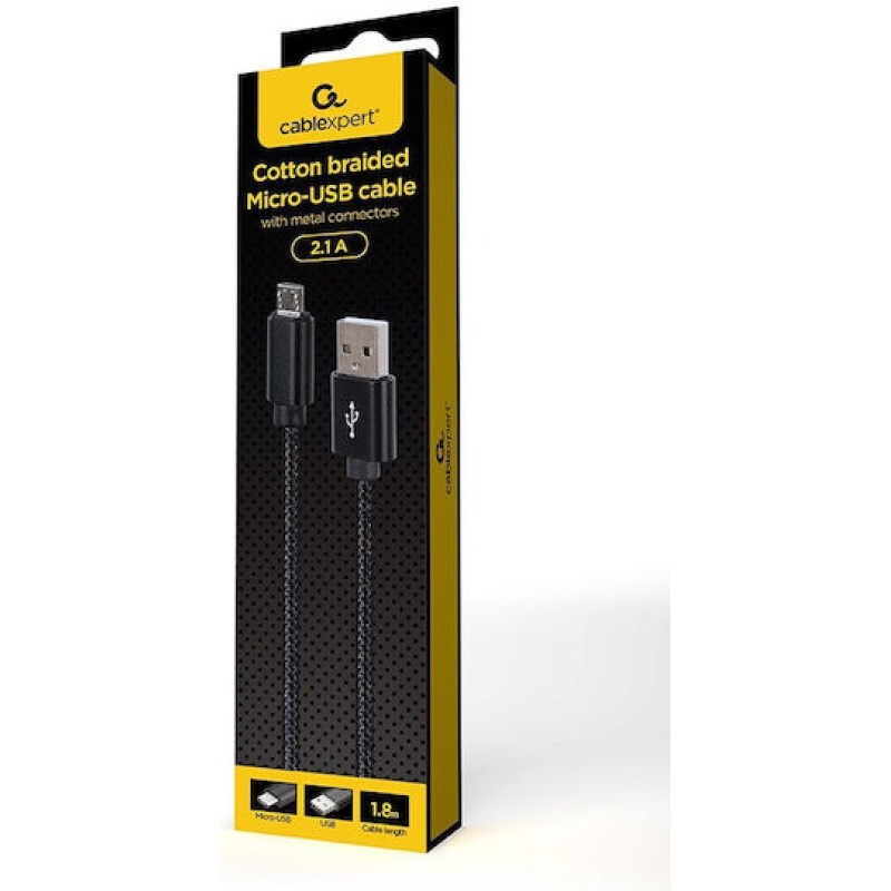 Gembird Braided USB 2.0 to micro USB Cable Μαύρο 1.8m 1τμχ (CCDB-MUSB2B-AMBM-6)