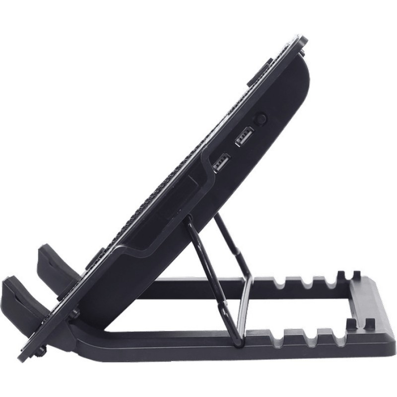Βάση ψύξης για laptops έως 17", εξοπλισμένη με ένα ανεμιστήρα 150mm, LED και σύνδεση με καλώδιο USB pass-through, το οποίο αφήνει ελεύθερη την θύρα USB του laptop για άλλες συσκευές. Είναι λεπτή και ελαφριά, για εύκολη μεταφορά ενώ έχει την δυνατότητα ρύθμισης ύψους για καλύτερη εμπειρία προβολής και πληκτρολόγησης.