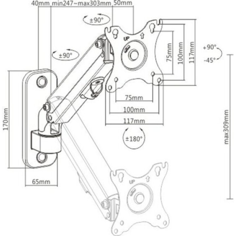 Gembird Επιτοίχια Βάση Οθόνης έως 27" με Βραχίονα (MA-WA1-01) (MA-WA1-01)