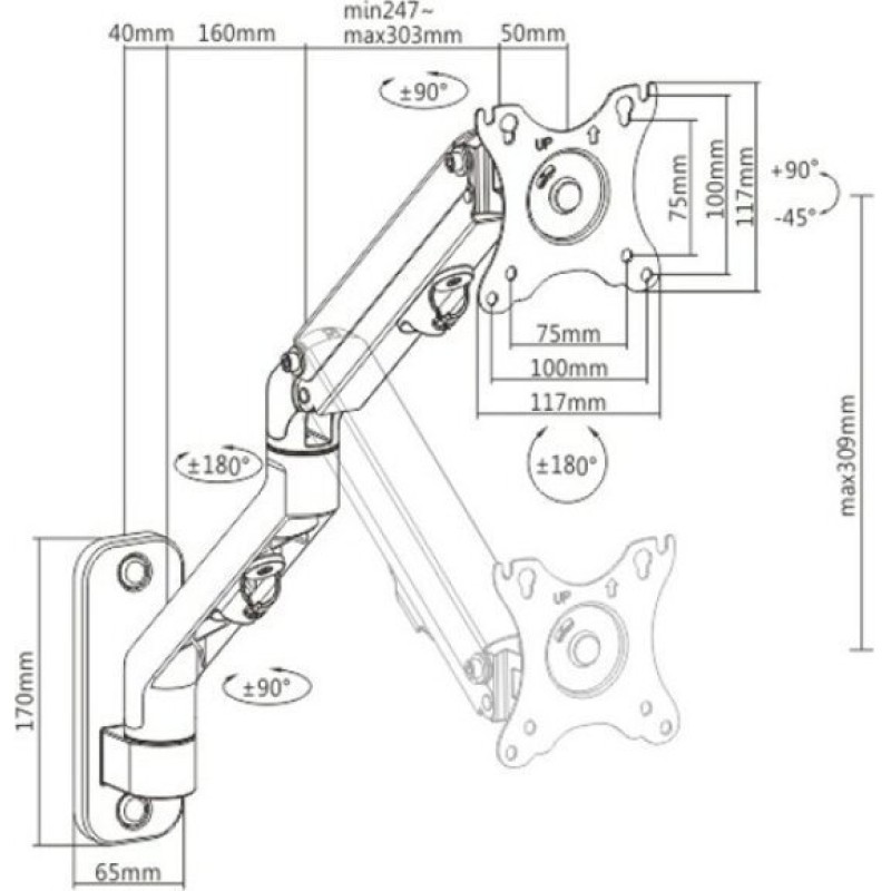 Τα προϊόντα που δεν αναγράφουν διαθέσιμο σημαίνει ότι δεν υπάρχουν άμεσα διαθέσιμα στο κατάστημα και θα παραληφθούν το αργότερο εντός των εργάσιμων ημερών που αναγράφεται στη διαθεσιμότητα. Σε κάθε περίπτωση η ημερομηνία μπορεί να μεταβληθεί και θα υπάρχει σχετική ενημέρωσή σας.Η βάση της Gembird τοποθετείται στον τοίχο και μπορεί να χρησιμοποιηθεί για τη στήριξη οθονών ως και 27 ιντσών με μέγιστο βάρος 7 κιλά. Για το βίδωμα της οθόνης υπάρχουν 2 υποδοχές διαφορετικών τύπων vesa 100 x 100 και 75 x 75 mm.