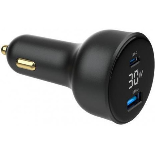Gembird Φορτιστής Αυτοκινήτου 30W 4.8A με Θύρες: 2xUSB 1xType-C Μαύρος (TA-UC-AC2PD30LCD-CAR-01)